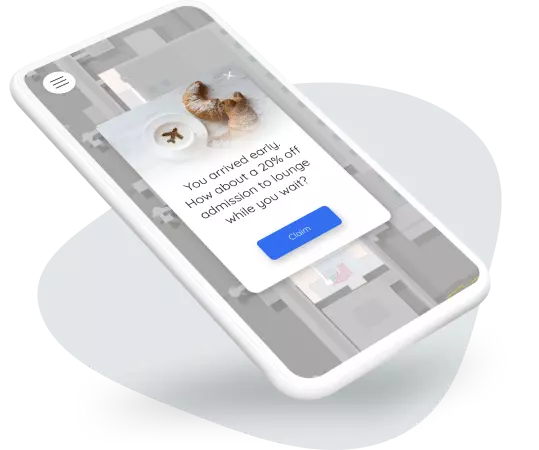 Specify areas of interest, and send location-aware messages when passengers enter or exit a geofenced area. Detect when users pass to the airside part of the airport.